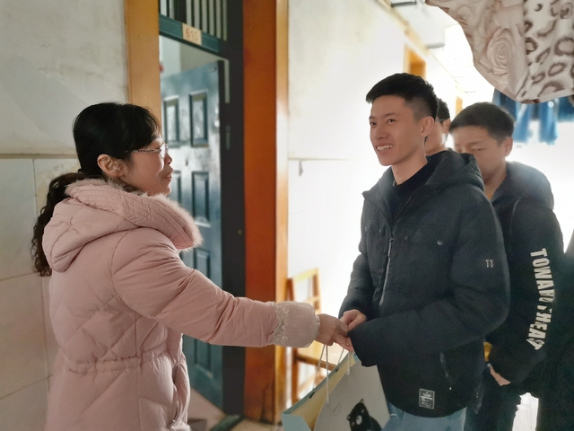 领导老师提前准备好学习、生活礼品,集体前往员工公寓中区一栋和中区四栋看望考研学子,尹德蓉在走访中关切地询问员工复习备考情况,并通过与员工分享经验、交流心得的方式致以鼓励。“会写的多写,答题卡尽量写满,给阅卷老师留下好印象。”老师们还交代考试注意事项,同时叮嘱员工保持良好身体状态。