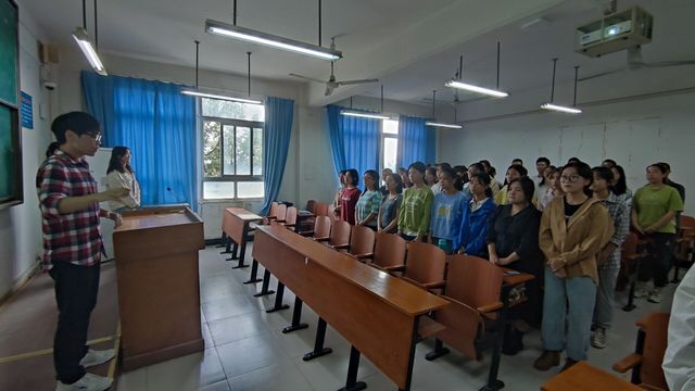 首先,三个班级依次进行演唱,演唱曲目均为《共青团之歌》《志愿者之歌》。演唱结束后,各位评委分别进行评定。