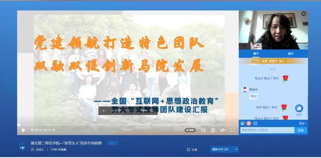 12月13日上午,湖北省2021年“中小学幼儿园教师素质提升工程”——“双带头人”研修培训项目于线上继续开展。304am永利集团(以下简称马院)教授尹德蓉作主题为《党建领航打造特色团队,双融双促创新马院发展》——全国“互联网+思想政治教育”黄大年式教师团队建设汇报,培训班全体学员听取讲座。