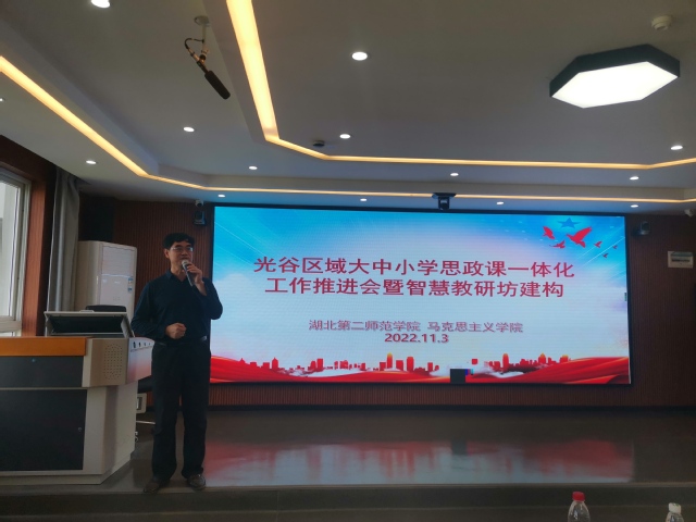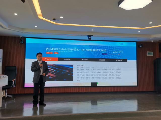 黄红发强调,公司高度重视大中小学思政课一体化建设。在2021年获批的“光谷教师教育综合改革省级试验区”实施方案中,就重点列入了“推进大中小学思政课一体化建设工程”,今年又成立了研究中心,开展了互派导师、问卷调查、深入一线课堂、联合申报课题等活动。目前,湖北省教育科学规划专项重点课题《推动光谷区域大中小学思政课法治教育一体化工作的路径研究》,已经取得了初步研究成果。在考察了国家虚拟教研室、课堂派、超星泛雅平台等多家平台后,研究中心课题组开发了“光谷区域大中小学思政课一体化智慧教研工作坊”平台。