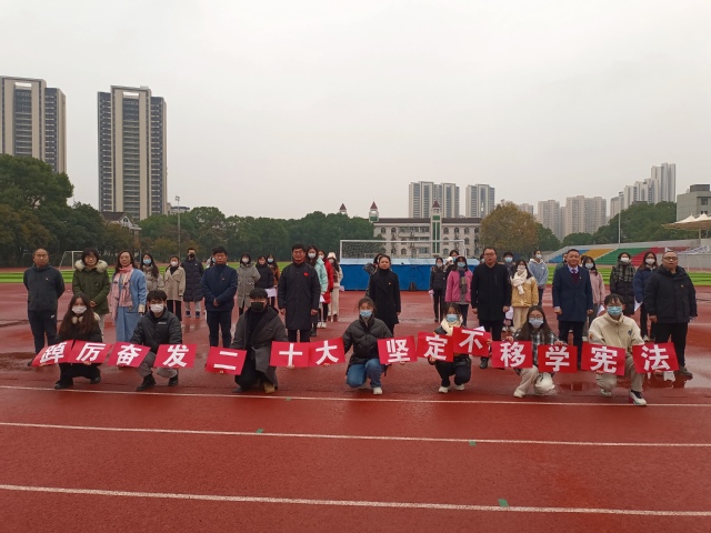 活动伊始,升国旗,奏国歌,全体师生行注目礼。随后,2020级思想政治教育1班陈露作为员工代表领读宪法部分条款,全体师生一同跟读。