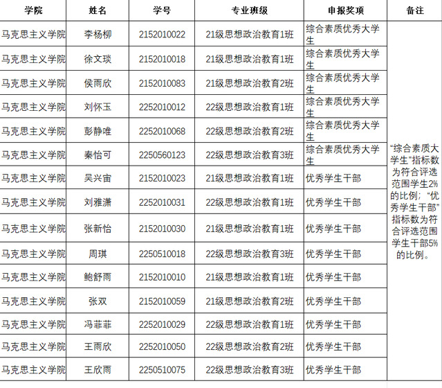 院级:1.2022年12月,获2022级思想政治教育2班团支部2022年度优秀团员荣誉称号